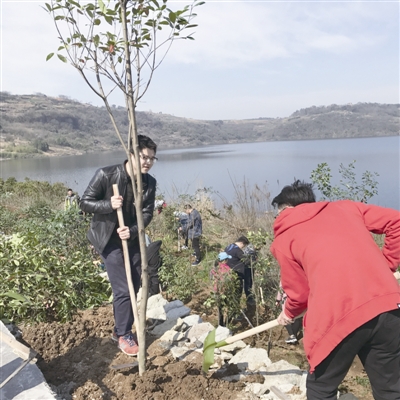 本次活动地点为梁柏台烈士墓区附近。因钦寸水库移民工程建设,原先的植被被移除,借此次植树节机会,正好为水库生态建设添一抹新绿。大家挥锹培土、铲泥填坑、踏实地面、扶树浇水……干得热火朝天。