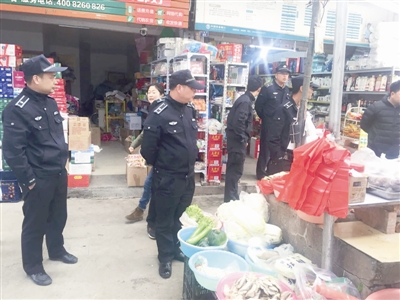 日前,镜岭镇组织城管、消防、质监等部门,对下潘村占道经营进行彻底清理整顿。执法队员对占道经营的商户进行劝说和教育,对占道物品进行了清理,村容村貌进一步得到改善。 (通讯员 梁雨晴 王建梁 摄)