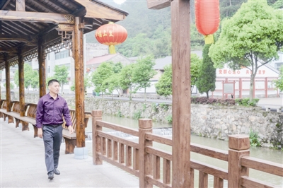 在村委办公室,记者见到郑柏朝时,他刚从河边捡垃圾回来。郑柏朝从小生活在河边,这里的溪水承载了整个童年。“小时候经常可以看见小鱼在清澈的河里游,我们常到河边抓田螺。”