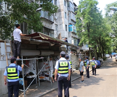 违法搭建雨棚,是城市管理中的细节问题,却时刻“涂鸦”着城市的“脸面”。