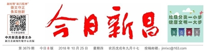 第3679期 今日8版 2018年10月25日 星期四 农历戊戌年九月十七 投稿邮箱: jinrixc@163.com
