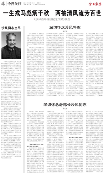 沙部长在农林部期间,我感受到他每天都是在紧绷着神经开展工作的。他每天早上来上班,经过部值班室门口时,总要留步问一句“有事吗?”部值班室24小时值班,负责上传下达职能,中央、国务院和有关部委的重要事项,都是通过值班室的“红机”保密电话联系,部内各局室及下面有何重大事情也通过值班室传达。当听到“没事”时,他才轻步走进那间小办公室伏案工作。如遇有重要事项需紧急处理的,就决不过夜,当天处理;对上级交办的事,他会尽心尽职地认真完成。他兢兢业业,任劳任怨,埋头苦干。每天早来晚走,就连周日和节假日也经常加班,不是开会就是找人谈话、谈心,或独自在办公室阅批文件,连我这个当秘书的也只得紧随其间,不敢轻易过个清闲的节假日。他身体不好,患有糖尿病,每天上班时,口袋里都装有一把花生米,以便在午餐前出现“空腹低糖症”心慌冒虚汗时,吃上点补充能量。每天午餐,部领导都同大家共用一个食堂,他因有糖尿病要吃药,多数是赶回家吃饭后又赶回机关照点上班,很少有正点午休。他就是这样,日复一日、年复一年地不知疲倦地干工作。他严格要求自己,不抽烟、不喝酒,无不良嗜好,生活俭朴、廉洁自律,无论到哪里从不接受送礼,一身清廉、一身正气,表现出一个革命老前辈的高尚风范和品德。他永远是我们学习的楷模,我们将永远怀念他!