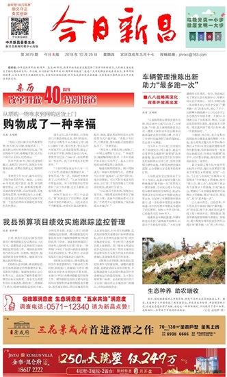 今日新昌 一版要闻 01 2018-10-251 2018年10月25日 星期四