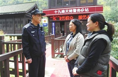 相比于一般案件,老宋最担心的还是游客的安全问题。有一次,老宋已经下班回家,突然接到景区电话,称一名12岁的小女孩与父母走失后失去了联系。此时天色已渐渐暗了下来,老宋不由自主地有些紧张,他马上召集大家赶回警务站。之后他一面安排工作人员查看监控,一面将小女孩照片发到景区微信群,然后又和其他人一起上山查找。同事看他年纪大,劝他在警务站等消息,但他说:“多一个人去找,孩子也许就能早一分钟找到,她遇到危险的可能性就能小一些。”最终,在大家的共同努力下,孩子被顺利找回。