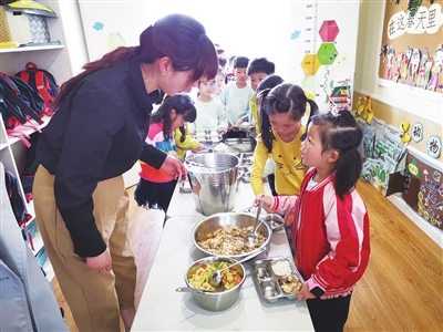 何春丽告诉记者,只要没有出差,她每天都会在两批教师用餐间隙到各个班看一下幼儿们的用餐状况。孩子们看到园长妈妈到来,也会叽叽喳喳说说自己对午餐的意见:“今天的肉烧得有点硬!”“今天的花菜炒得很好吃,我们还想吃。”此外,食堂组长、保健医生、值周老师都会不定期巡视幼儿和教师进餐情况,所有的问题和意见最终会被汇总,一同反映到食堂工作人员处。