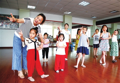 7月19日,县文化馆三楼排练房内凉风习习,越剧初级班的小学员们正在老师指导下进行唱腔和基本表演练习。据悉,县文化馆“七月流火 艺送清凉”2019年暑期少儿公益培训班7月16日正式开班,共设立越剧初级表演、硬笔书法入门、舞蹈基础等10个教学班,由文化志愿者免费为孩子们上课,满足少儿艺术学习需求,丰富他们的暑假生活。目前已有近300名少儿报名参加培训。 (记者 俞晓委 摄)