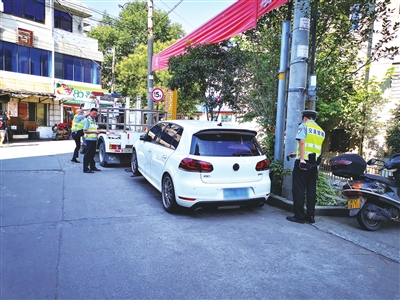 这段视频正是张某发布在网上的。昨日,记者从县公安局交警大队获悉,张某在网上发布那段视频后,有群众在“浙江交警”微博上进行投诉。县公安局交警大队随即开展调查,通过相关技术手段发现,该视频中的车辆涉嫌非法改装。经过民警核查,该车车主张某还涉嫌无证驾驶,其驾驶证在2017年因扣满12分已被注销。民警在多次联系张某无果后,通过技术手段在兴南路找到视频中那辆高尔夫GTI,并用拖车将该车拖移暂扣。