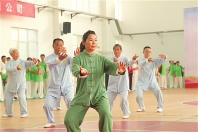 9月8日,2019年新昌县中老年人太极系列展示活动在西郊中学举行,来自全县各乡镇(街道)20支代表队400余名太极爱好者相聚一起,展示“八段锦”及各流派太极拳、剑、棍、舞等精彩表演。 (记者 俞晓委 摄)