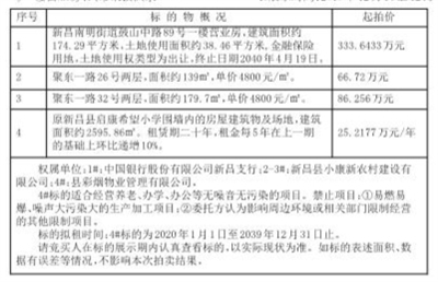 新居聚东一路营业房所有权及双彩乡原启康希望小学房屋租赁权,详见清单: