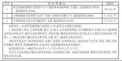 本次拍卖标的为新昌县镜岭镇雅庄村游客中心“天姥农味·镜岭味道”主题馆及小将镇原菩峰羊毛衫厂、毛麻纺织厂房屋租赁权,详见清单:
