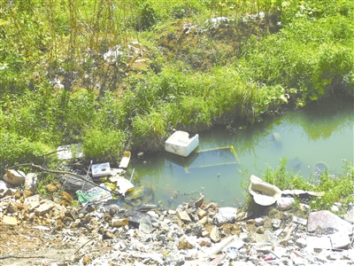 昨日,根据县治水办提供的图片,记者找到位于沃洲镇文化路旁的小水沟,现场发现,各种垃圾从路肩往水体所在地面倾倒,看起来煞是难看。