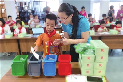 8月14日,东茗乡垃圾分类宣讲团走进东茗村文化礼堂,对辖区青少年开展“垃圾分类减量投,争做环保小卫士”暑期春泥计划暨儿童关爱服务活动。小朋友们通过垃圾分类趣味游戏,在寓教于乐中收获垃圾分类知识,树立“垃圾分类,从我做起”的环保理念。 (通讯员 赵赛钰 摄)