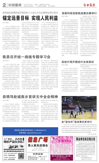 11月27日,县委副书记、政法委书记徐凯盛前往澄潭街道,开展“学习贯彻党的十九届五中全会精神”专题宣讲,推动全会精神进一步在基层贯彻落实。政法委、改革办、信访局、档案馆、总工会、团县委、妇联、残联、红十字会、关工委、澄潭街道等相关单位全体工作人员以及棠村村党员到会聆听宣讲。