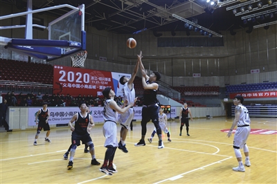 11月27日,2020年浙江省“义乌中国小商品城·篮协杯”篮球赛在县体育馆拉开帷幕。“篮协杯”篮球赛是我省传统的大众篮球赛事,今年为第八届,是历史以来参赛队伍最多的一次,来自各市(县)篮球协会、企事业单位、高校及俱乐部的16支队伍共220余名运动员参加角逐。图为浙江中国小商品城集团队和浙江灏宇科技(新天龙)队进行揭幕战。