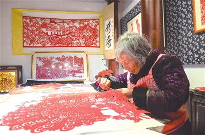 “老人小孩年轻人都喜欢剪纸,所以每年春节前,我都会剪一些送送亲戚朋友。”王菊香笑着说。当天,王菊香的外孙来看望她时,她便送了几幅“福”字剪纸作品,临别时还托外孙带给尚在读小学的曾外孙几幅小的剪纸作品,让曾外孙可以带去学校用作新年装饰。“我曾外孙说,收到漂亮喜庆的剪纸作品比收到红包还要开心。”王菊香回忆道。
