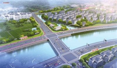 道路长度:约439.6m,其中新民江桥182m、新昌江桥67.5m;