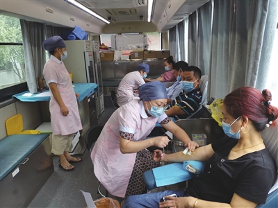 昨日,城南乡组织开展无偿献血,乡、村党员干部、群众、企业员工等积极参加献血。参与人员按序登记填表、量血压、测血型等,共有35人成功献血。 (记者 王娟敏 通讯员 刘炜英 摄)