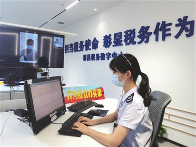 今年以来,国家税务总局新昌县税务局积极推进便民办税春风行动,打造并发挥新昌税务数字中心的作用,通过远程帮办和问办结合,着力破解纳税人办事难点堵点。图为税务人员通过线上方式辅助纳税人办税,远程解决纳税人在业务办理过程中遇到的业务操作问题。