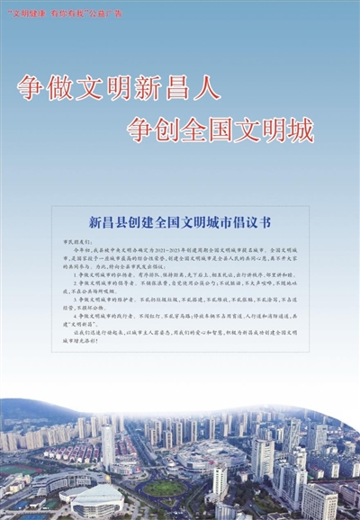 让我们迅速行动起来,以城市主人翁姿态,用我们的爱心和智慧,积极为新昌成功创建全国文明城市增光添彩!