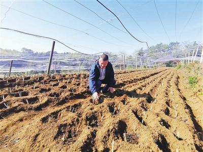 杨旭明于2017年引进藏红花,开始试种,获得了成功。杨旭明说,回山镇地处山区,地势高峻,平均海拔400多米。土地肥沃松软,雨量充沛,四季分明,昼夜温差大,非常适合藏红花繁殖。他在2017年成功试种藏红花后,第二年就用自己种出来的藏红花种球扩大种植。2018年开始,他把藏红花种球卖给别的村民种植。“一个种球能发成两个种球。”现在正是种植藏红花的季节,杨旭明把有两根茎的种球一个个种下去。“明年五六月份就可以收获了,把种球挖出来储存,到10月份发芽,10月下旬开始开花,把花采下来,再把一朵花珍贵的三根花丝拔下来。”杨旭明拿着藏红花介绍说。
