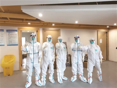 韩永锋说,在隔离点,他们主要是做护工,为隔离人员送餐。由于他们负责的隔离点原来是一个工地,所有设施都不完善,条件比较艰苦。前三天,他们都是早晨6点起来采集核酸,然后穿着隔离服进去做保洁工作,每天晚上9点左右才能忙完。第四天之后,他们分成三人一班轮流送餐,每到饭点,总是先将热腾腾的饭菜配送到隔离人员手中,回来后再独自扒上几口盒饭。在隔离点各楼层之间昼夜不歇地奔波,连续几个小时穿着密不透风的防护服,衣物被汗水浸湿。由于缺乏人手,他们还要做消杀、清理垃圾等工作。一天下来,双肩被压得泛红发肿,双眼红肿,嗓子嘶哑,乳胶手套内双手发白起皱,但他们总是用最真挚的笑容和最细致的工作,为隔离人员送去温暖和阳光。