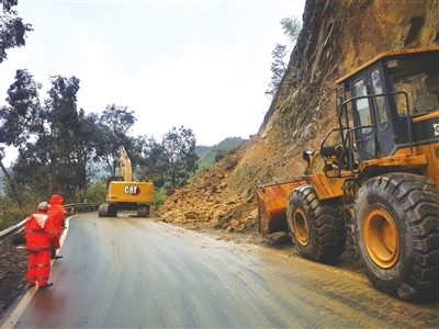 受连续阴雨影响,新昌山区道路承受不小压力。2月9日下午,小将镇溪竹村巧界线路段发生塌方,塌方共计300余立方米。面对险情,县公运中心快速反应,组织人员及时赶到塌方路段进行公路应急抢修,保障公路安全畅通。截至10日上午,该路段已恢复正常通行。 (通讯员 王蕾 摄)