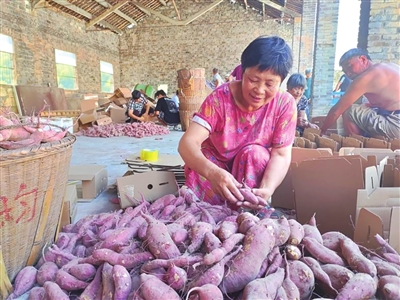 近日,镜岭镇冷水村迎来了小番薯丰收季。刚从地里挖上来的新鲜番薯,依稀还能闻到泥土味,给冷水村带来了共富新“薯”光。接下来,冷水村计划成立农产品专业合作社,帮助农户实现统一包装、销售,让小小的番薯成为农民致富的“黄金果”。 (通讯员 潘卓伟 摄)