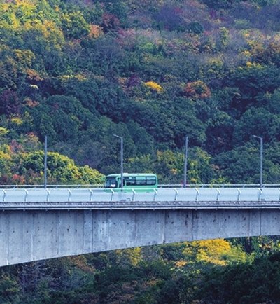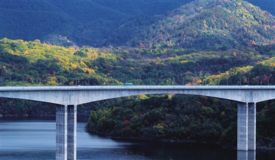 近年来,我县路网建设取得不小成就,打造出多条“美丽公路”,并通过城乡一体化公交改革,增加和优化城乡公交线路83条,实际运行的城乡公交线路达到320条,让沿线村庄群众搭上“共富班车”。图为沙溪至新昌东站的公交车正行驶在“省级精品示范道路”江拔线梁柏台大桥上。 (记者 石磊 摄)