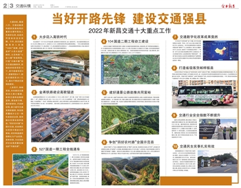 大道如虹,联通八方。交通运输是构建新发展格局的重要支撑和服务人民美好生活、促进共同富裕的坚实保障。今年,县交通运输局深入实施“14361”战略,坚定走好“小县大通道”路径,立足构筑“七纵七横”骨架网络,打造“内畅外联”综合交通运输体系,实施政府投资项目14个,其中续建项目6个、新建项目8个,综合交通投资25.1亿元,高水平推进交通强县建设。