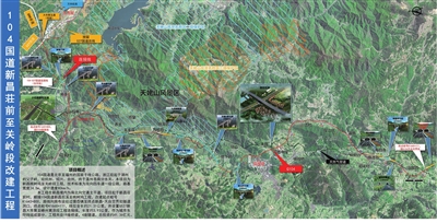 该项目主线起于南明街道荘前村,顺接104国道后溪至桃树坞段,向南延伸,终于儒岙镇关岭隧道口,与104国道关岭至天台响堂段相接,长约21.31公里;同步建设104国道与527国道、209省道连接线约3.93公里。全线设互通2处,综合公路服务站1处。主线和连接线均采用双向四车道一级公路标准,设计速度80公里/小时,路基宽度24.5米,总投资约41.36亿,已于9月底动工。