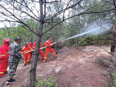 日前,浙江钦寸水库有限公司2023年春季森林消防应急演练在原钦寸村后山举行,钦寸水库、沙溪镇、沃洲镇和儒岙镇森林消防队参加演练。当天的演练得到县应急管理局的业务指导,内容主要为500米高扬程森林消防水泵串联出水。此次演练切实提高了消防队员熟练掌握和运用灭火工具程度和处置森林火灾的实战能力。(记者 俞晓委 摄)