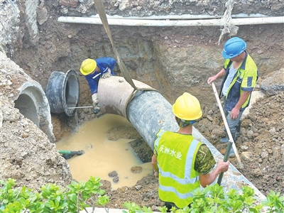 本报讯 近日,为配合省重点工程(104国道与新蟠线连接线工程新中路平交口改造工程)建设需要,县水务集团在前期完成DN1000管开挖预埋、DN600管牵引试压等准备工作的基础上,完成管道对口迁建任务,更好保障群众供水需求。