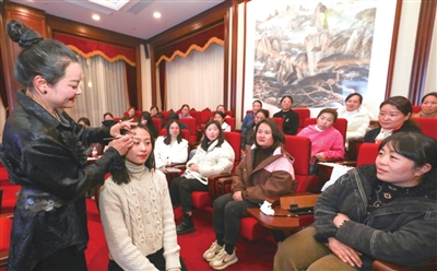 连日来,万丰奥特集团妇委会开展庆“三八”系列活动,来自该公司下属子公司的女职工们通过参加健康检查、家风讲座及相亲、野餐、踏青等多彩活动,欢度“三八”妇女节。图为3月6日晚,该集团邀请美妆老师为女职工进行化妆、服饰搭配培训。