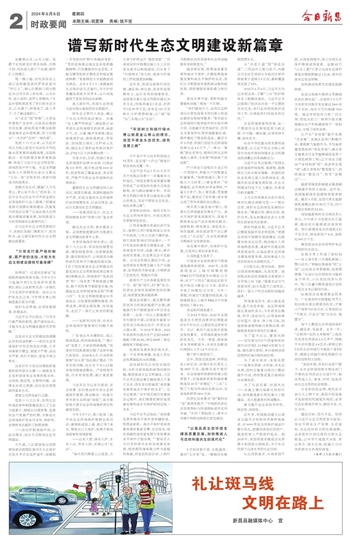 人与自然和谐共生的中国式现代化路径清晰可见——“顺应自然、保护生态的绿色发展昭示着未来。”尊重自然、顺应自然、保护自然,是全面建设社会主义现代化国家的内在要求。