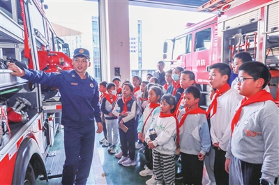 11月9日是第33个全国消防日,11月是全国消防宣传月。连日来,我县各机关单位和中小学校纷纷开展消防安全主题教育活动,进一步增强消防安全意识和自我保护能力,营造“人人学习消防知识 人人关注消防工作”的良好氛围。图为县青少年活动中心组织学生赴县消防救援大队学习消防知识。
