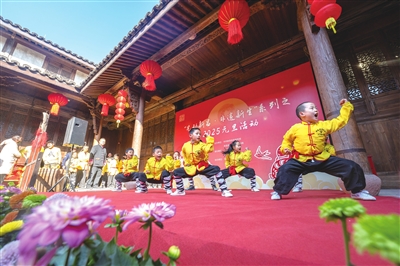 近日,里江北历史文化街区县非物质文化遗产馆内一片闹腾,“艺动新昌·非遗新生”系列之2025元旦活动正在这里举行,舞龙、舞狮、叠罗汉、调腔、《拂云煎》唐代煎茶法等非遗项目轮番上台的同时,馆外非遗集市中还汇集了非遗美食、非遗工艺品和非遗体验等多个项目,以多彩“非遗”展演展示迎接新年到来,吸引众多市民、游客参与活动。 (记者 俞晓委 通讯员 张靓 顾焯阳 摄)
