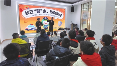 连日来,我县多部门以秋假为契机,推出“家门口青少年宫”等,为孩子们带来丰富多彩的主题活动。图为县公安局与七星街道西岭社区联合推出的“秋日警点,热血集结”少年警校主题活动现场,警察正在为现场学生讲解警用装备。 (记者 黄婉晶 余佳 摄)