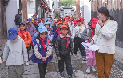 近日,县青少年活动中心组织30余名学生走进镜岭老街,开展“童探镜岭·解码共富密码”研学活动,通过体验非遗手作、漫步千年古街,在实践中理解“资源变资产”的共富路径,增强孩子们的乡土情怀。 (记者 俞晓委 摄)