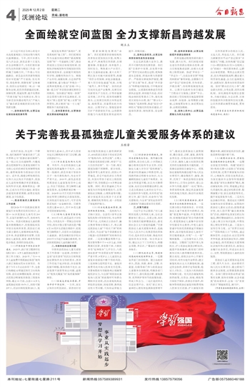 习近平总书记强调:“对儿童特别是孤儿和残疾儿童,全社会都要有仁爱之心、关爱之情,共同努力使他们能够健康成长,感受到社会主义大家庭的温暖。”完善孤独症儿童关爱服务体系,是践行以人民为中心发展思想的具体行动,是补齐民生短板、推进共同富裕的务实举措。结合我县实际,建议从以下三方面发力,构建全周期、多层次、广覆盖的关爱服务体系: