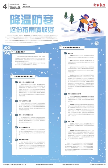 即使你不属于上述人群,也建议在寒潮前备好充足的日常药品和防寒物资,使用固体燃料燃烧取暖的居民应检查通风设施,避免火灾或一氧化碳中毒的发生。寒潮橙色或红色预警期间减少出门,做好保暖与防滑。通过实施系统化的健康防护策略,可有效提升个体健康适应能力,确保在极端天气下守护自身与家人的生命安全与健康。
