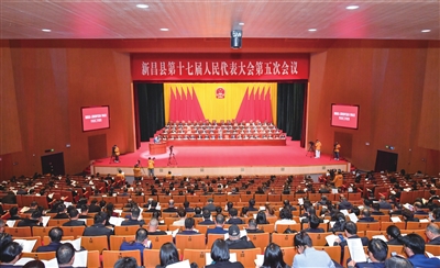 上午8时30分,邵永明宣布新昌县第十七届人民代表大会第五次会议开幕,全体起立,奏唱国歌。