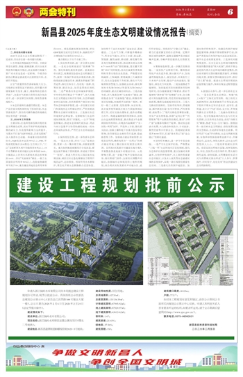三是加大生态文明建设监管力度。建立目标责任考核机制,压紧压实党政领导干部生态环境和资源保护责任,为全县生态文明建设提供坚强保障。充分发挥人大、政协职能作用,持续跟踪问效,增强监督实效,人大代表、政协委员提出涉及环保工作的建议、提案,代表建议涉及5件,办理结果满意度100%,助力打造生态文明建设先行区。县人大常委会听取和审议了2025年新昌县重点饮用水水源保护区生态保护补偿情况报告,确保全县饮用水水源地安全稳定。