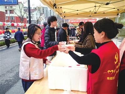 近日,七星街道南岩社区举办“共享暖心——元宵喜乐互动参观体验行动”,吸引众多居民参与。在暖心关爱区,志愿者为居民提供免费理发、小修小补等便民服务;文化体验区则通过煮元宵、猜灯谜等传统活动,营造浓厚节日氛围。现场还同步开展共富产品展销、就业政策宣传等,切实将暖心服务送到群众身边,彰显社区治理温度。 (记者 黄婉晶 孟洲颉 摄)