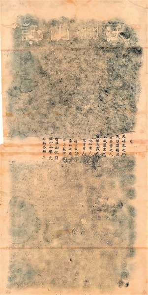 据新昌文物工作者俞国璋先生考证,此碑拓片为博物馆旧藏,测量拓片得高约155厘米,宽80厘米。原碑无存。从拓片文字分析,白文首刊为刘禹锡所书,后重刊于宋嘉祐己亥年(1059),嘉定四年(1211)再刻,嘉熙庚子(1240)王梦龙题跋,甲辰(1244)七月补刊跋。根据明万历《新昌县志》和民国《新昌县志》所载,丁璹,字世珍,号宝斋,宋常州晋陵人,尤工文词,善篆隶;嘉熙己亥(1239)仲冬宰邑,淳祐辛丑(1241)仲秋还朝,后升大理评事;民为其建生祠并立碑以志去思。(9)