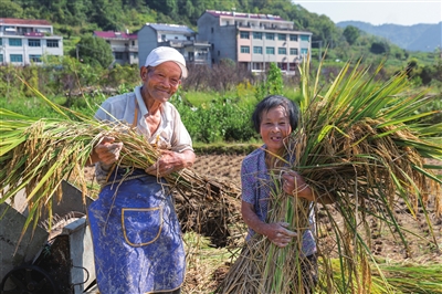 “这是大畈村81岁的潘妃娟和她老伴。”宣利月说。那是去年10月,老两口在田里收割最后一季稻子。她背着相机走进田间按下快门,为他们拍下了这张珍贵的合影。拍完照,她还卷起裤腿,帮老人割完一整片稻田才满意地离开。