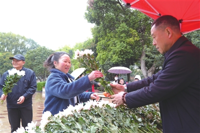 3月27日上午,由县委宣传部主办、新昌县爱益起服务中心承办的“文明祭扫传新风 榜样引领忆先烈”主题活动,在江滨公园止水碑广场和节水公园入口广场同步开展。现场宣讲文明祭扫意义,发放相关宣传手册,重点普及禁燃禁放、鲜花祭扫相关要求,并设置“文明祭扫承诺墙”,市民签名承诺后可领取鲜花,以文明祭扫举措倡导新风尚,引导市民绿色缅怀、安全祭扫。 (记者 徐鹏 摄)