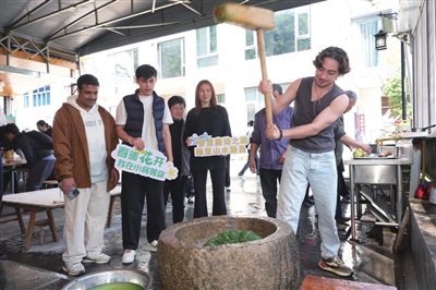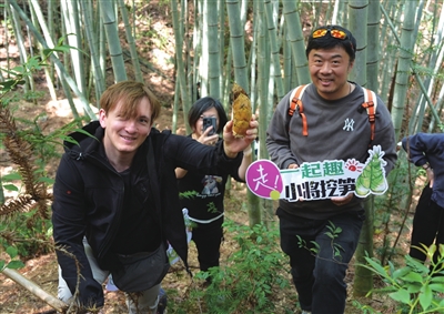 当天,结溪村春和景明,草木新生,处处生机盎然。活动现场,国际友人们沉浸式体验了捣麻糍、挖春笋等当地特色民俗活动,亲手制作传统美食,品尝乡村特色风味,在欢声笑语中近距离感受新昌乡村的淳朴民风与生活气息。“这里真的太美了,青山绿水间满是生机,挖春笋、捣麻糍的体验很特别,让我感受到了中国乡村的独特魅力,也看到了村民们在这片土地上的幸福生活。”来自澳大利亚的LiBai在体验完挖春笋后分享道。
