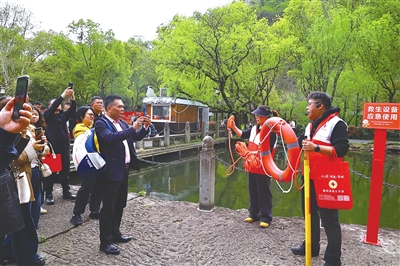 4月2日,2026年红十字会“5・8 人道公益日”全国性品牌项目现场会在绍兴举行。我县红十字会作为会议的现场展示点,向市民和与会嘉宾展示“一杆一圈一绳”防溺水项目示范安装成果,还开展了山地搜救演练。